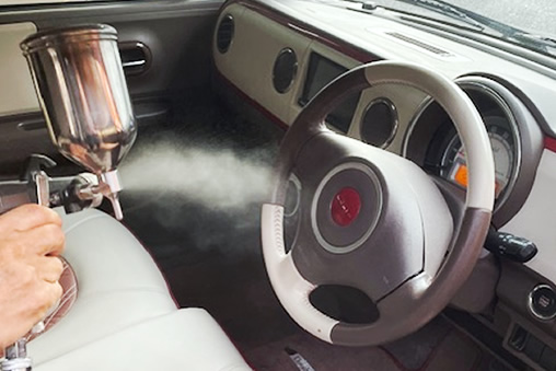 カールーム工房では、この「銀系光触媒ルームコーティング」を使用し新車のように清潔で安心な中古車を提供いたします。